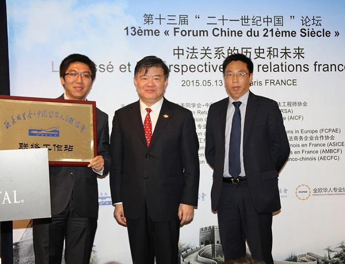 论坛演讲结束后,还举行了向中国旅法工程师协会“欧美同学会海外联络站”授牌仪式。由欧美同学会·中国留学人员联谊会会长陈竺将匾牌授予了中国旅法工程师协会秘书长李正博士。